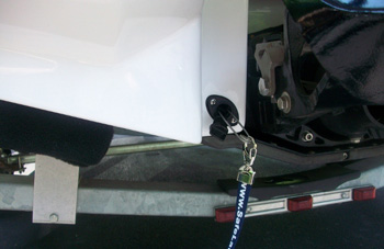 Missing drain plugs are a common cause of trailerable boat and personal watercraft sinkings. The Safe Launch Drain Plug Reminder System places the reminder where it's needed the most: in the drain hole. Safe Launch protects your family, friends and boat from sinking. With Safe Launch's hook and strap components, you can easily insert a reminder directly into the drain hole before you launch. It's simple and easy to install—attach the Safe Launch strap to the tie down strap nearest your boat’s drain plug. Insert the flex hook into the drain hole.