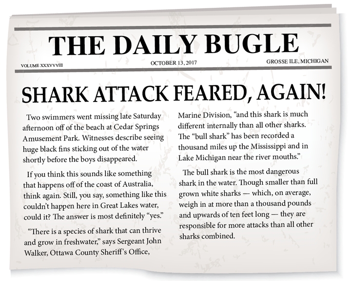 Jerry Carducci’s book “Crystal Bay” gives us a thrill and some insight as to how these sharks could get to the shores of Lake Erie and the Detroit River.