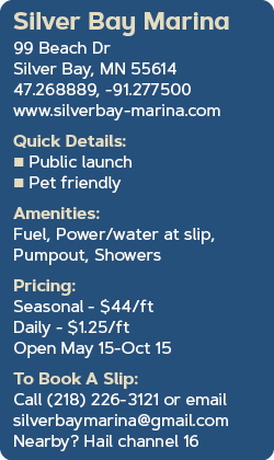 Open May 15-Oct 15 and with 108 slips available for daily, weekly, monthly or full season rental, Silver Bay Marina makes for your perfect Lake Superior getaway location. With seasonal rates of $44 per ft to daily rates of $1.25 per ft, you can call (218) 226-3121 or email [email protected] for available rates or to book a slip, or visit www.silverbay-marina.com for all rates and information. If you are close, you can call over the radio on channel 16 and their friendly and knowledgeable staff will meet you at the dock! This is a pet friendly location with amenities including dock boxes, shower rooms, gas, pump outs, and power/water at each slip. Their deck is the perfect place to catch the sunrise or grill your latest catch.