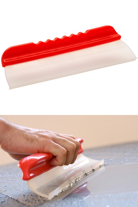 As soon as professional boat detailers finish rinsing a surface, they remove water droplets before they can dry and turn into mineral deposits. And, more often than not, they're using a Flexible Water Blade from Shurhold. This professional tool quickly sheets water away from gelcoat, paint and glass to leave a clean, spot-free surface — all without backbreaking labor and mounds of wet towels or chamois to deal with.