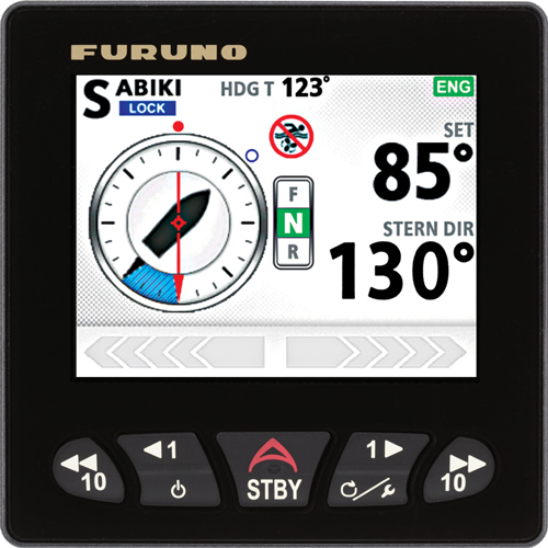 The new SABIKI™ Lock is designed for fishermen and takes advantage of the SABIKI™ fishing mode available with the NavPilot 300 Autopilot. With Furuno’s SABIKI™ mode, the helm is steered automatically by the NavPilot to maintain vessel position while the angler needs only to adjust the throttle to maintain a fixed position. FishHunter™ Drive's new SABIKI™ Lock expands upon this functionality by controlling both the rudder and throttle to maintain vessel heading, freeing the angler to focus 100% on jigging and other vertical fishing.