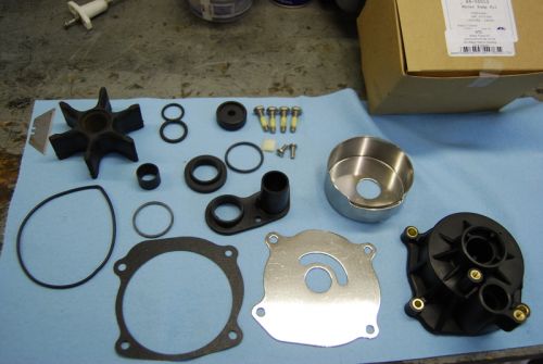 Buy a factory service manual for your engine, so you can follow the correct procedure and use the correct parts. An hour or so is all it takes to remove the gearcase, replace the pump, and re-install the gearcase to the engine.