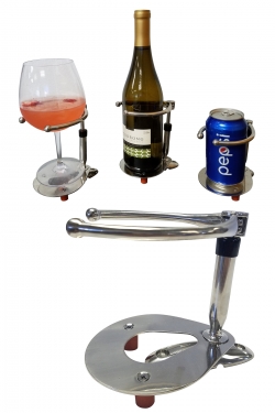 Standard cup holders typically don't accommodate anything larger than three inches in diameter. To ensure a beverage in any size container stays put, the Adjustable Drink Holder from Accon Marine has a unique dual-armed design, which secures everything from a two-liter soda bottle to a long-stemmed wine glass. It’s available in marine-grade stainless steel or aluminum and snaps securely into a quick-release base. The holder pivots for optimal positioning and removes with the press of a button when no longer needed. It extends vertically 2.5” and the arms span from 2.5” to 4”. An optional spring-loaded Wine Glass Holder Insert is also available.