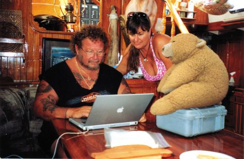 And then it hit me. With all the fancy electronic garbage being thrust upon us, how am I going to get this feeling in the future? Looking at an electronic screen? I think not. No, the ring from the coffee cup on that paper chart is worth more to me than all the simplifications that the electronic stuff gives me. I even remember when it happened. We were four days out of Clarion Island, on our way to the Marquesas. We got side-slapped by a wave and it jarred my cup as I stood there checking our position early one morning… And the faded spot on the edge of the chart, where a wave dropped through the open hatch soaking part of it, as we were about halfway from Hawaii to Redondo. I didn’t find it until I came down to wake Jody for her watch. I remembered thinking we’d better get a new chart when we got home. But, we didn’t… and we won’t. Not as long as there is enough to still navigate by. And when we can’t use it anymore, I think I’ll frame the darn thing.