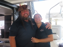With airfare included, one U.S. winner (Laura) and one Canadian winner (Phil) and their guests – Andy and Kerry, respectively – were whisked away to board a crewed Moorings’ 4500 sailing catamaran.