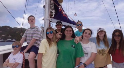We got to visit a salt pond on day nine and go on two dives, one was a coral reef and the second was to The Indians, four large rocks that stick up from the water under which you find all kinds of coral and colorful fish. It was an amazing dive to go on. On day ten we dove the RMS Rhone, a UK Royal Mail Ship that sank in 1867 during a hurricane. I thought this was the best dive that I went on because we got to see multiple reef sharks and a spotted eagle ray. The ship was super intact but was split in two, the bow being more intact than the stern. We filled the rest of the week with another port day, tons of sailing and hiking, another night dive, a couple of science presentations, and plenty of day dives. During our free time, we went tubing, played sand volleyball and soccer, had parties in the saltwater showers, and even got to jump off the side of the boat and do flips and dives! I got dingy-certified on day twelve and drove the dinghy around for a while that day.