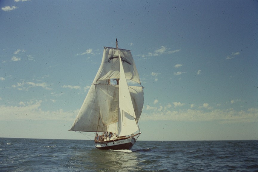 I was standing on the deck of the Stone Witch, a 70-foot square-rigged topsail schooner out of San Francisco. We were headed south to Central America. It’s like it was yesterday. I remember there were a couple of albatrosses gliding across the ocean’s wave tops, and I wondered just how they managed to tip the top of the waves, without ever actually touching them.