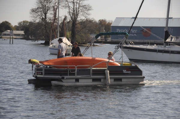 When deflated, the portable Sevylor was out of the way while we were fishing and cruising, and served well when matched to a turbo-charged 12 volt inflator/deflator. It was also great for exploring beaches and getting wet exercise on hot summer days from our anchored Mothership.