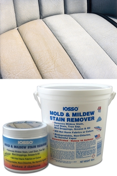From cotton duck to modern acrylic textiles, all outdoor fabrics collect stains and eventually begin looking old and tired. Scrubbing with water and mild detergent may remove some of the surface dirt, but organics such as mold, mildew and algae need to be handled differently so they won't grow back. What's needed is biodegradable Mold & Mildew Stain Remover from Iosso Products. It rejuvenates fabric, vinyl, wood and plastic without harsh chemicals that bleach-out colors and deteriorate materials.