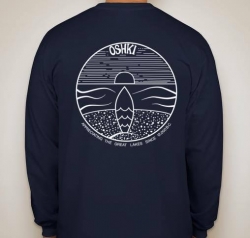 The four Oshki shirt designs pay homage to Lake Michigan with the main logo being a sunset over water enclosed in a circle. The shirts come in uni-sex sizes from small to extra extra large, and range in price from $21.99-$31.99.