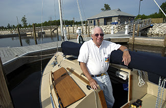 A gentleman is pictured in his boat moored at the Cedar River Harbor in Menominee County.