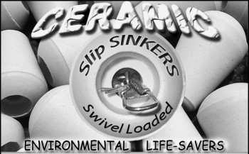 Unlike lead, ceramic has a fish attracting sound when it strikes rocks, making a sound like a crayfish tapping its tail! The ceramic slip sinker we are showing here is swivel loaded, so the line is protected by the swivel when casting.